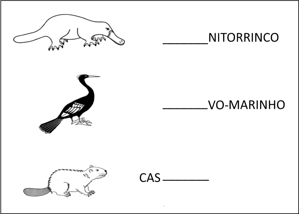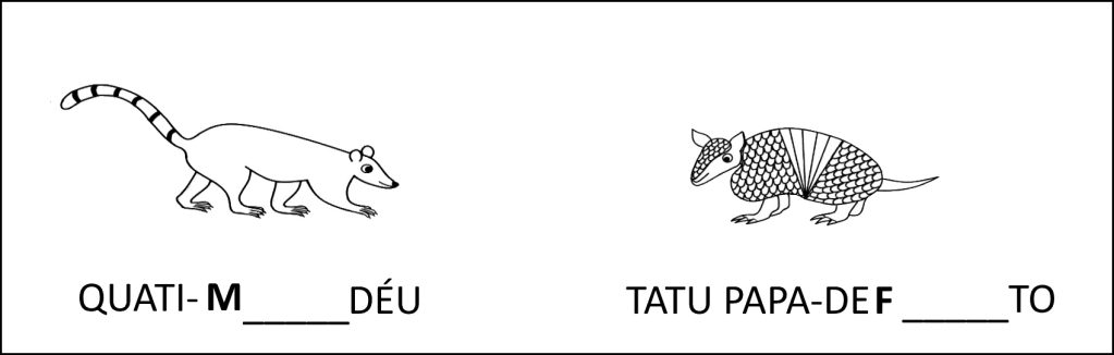 Desembaralhe as sílabas dos nomes de mais dois bichinhos com nomes compridos.