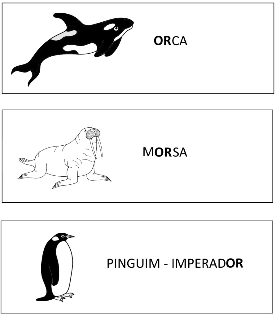 Já no nome da orca, a baleia que não é baleia, temos uma sílaba com a  vogal antes da consoante, formando um som diferente, que pertence ao grupo AR  ER  IR OR UR.