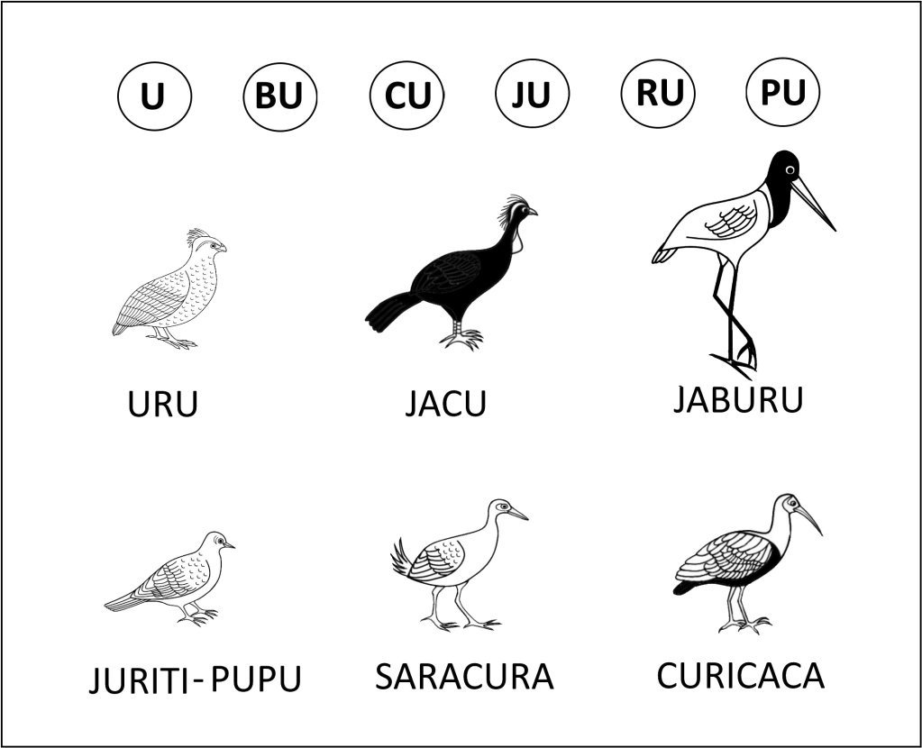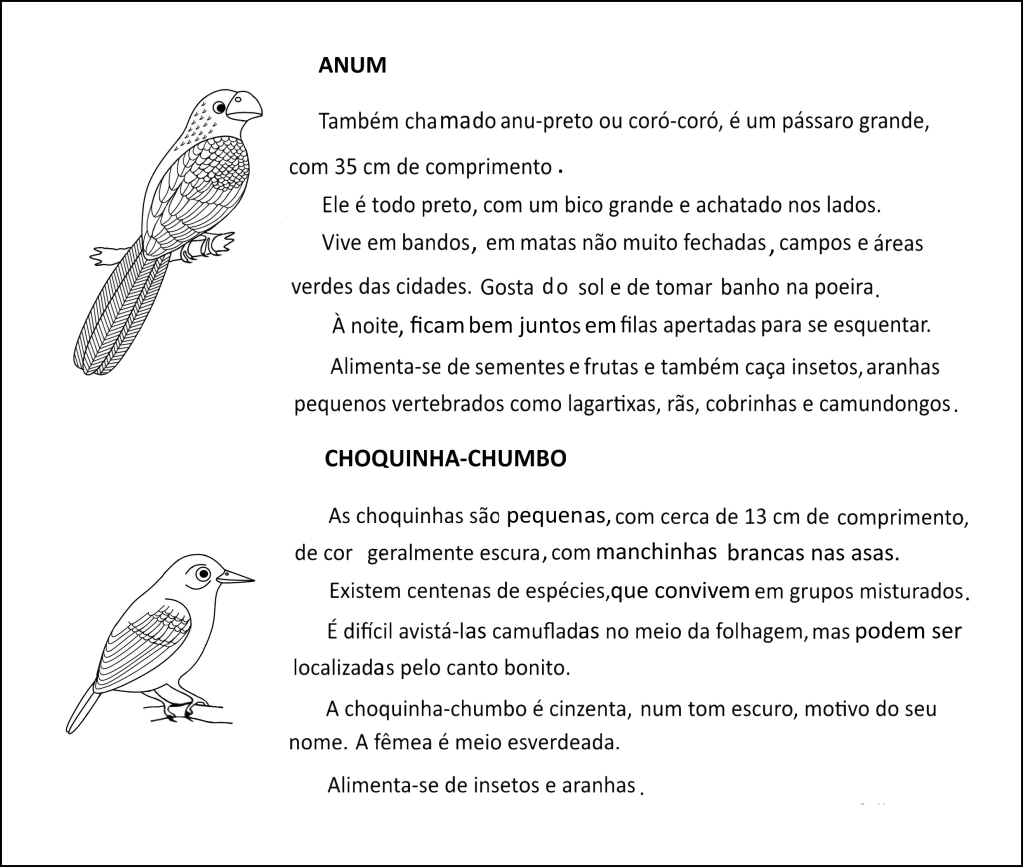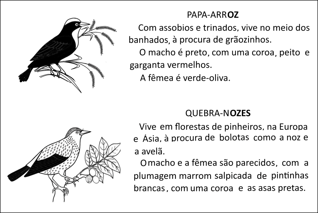 Leia em voz alta os nomes dessas duas aves e repare bem na diferença de som nas duas combinações possíveis.