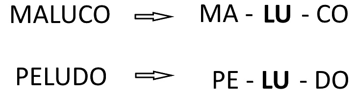 Agora veja esses dois tipos de sílabas, sempre com o mesmo som numa só palavra.