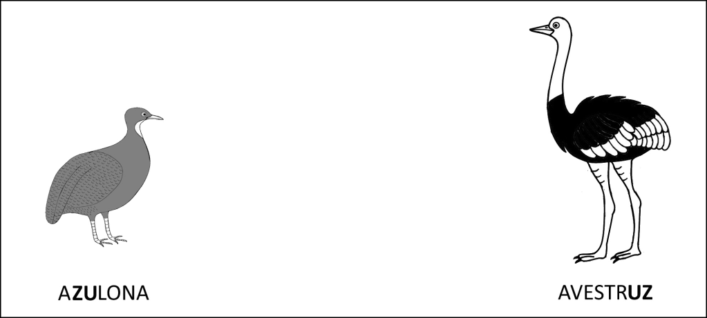 Como em CAPUZ  e AVESTRUZ, as sílabas formadas pela vogal U seguida da consoante Z aparecem sempre no final das palavras, sendo as mais fortes e com o mesmo som da consoante S.