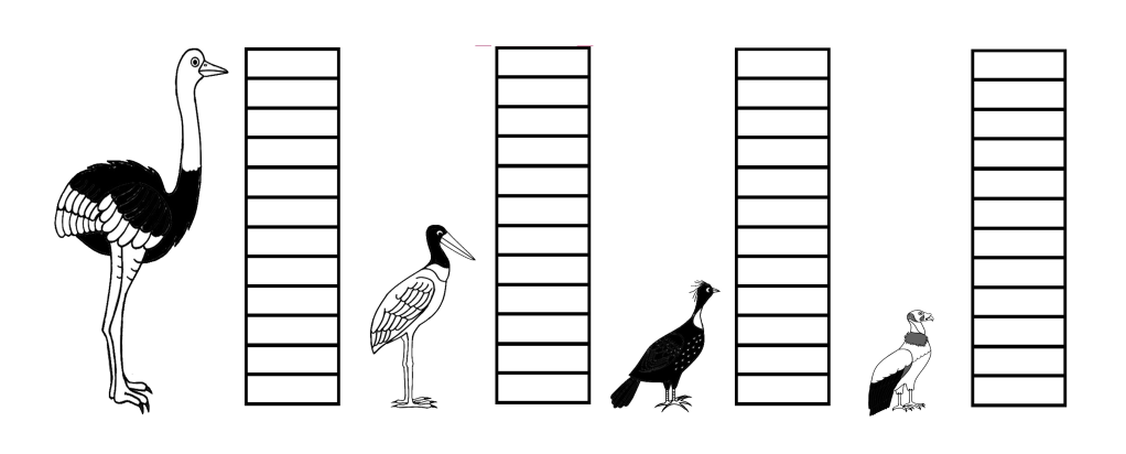 Compare o tamanho pintando a quantidade de quadrinhos para cada espécie.