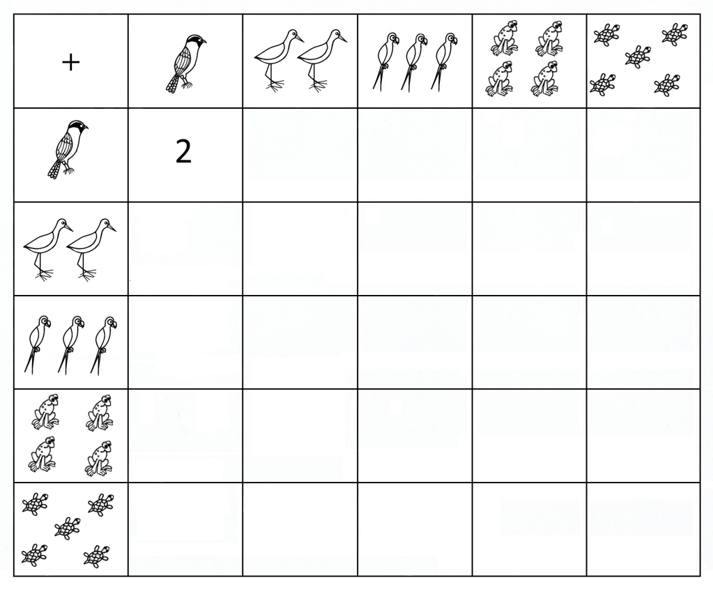 Complete os quadros de tal forma que a soma dos números na horizontal ou vertical seja sempre igual a 10.