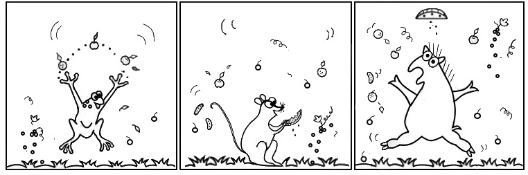 Você vai recolher algumas para decifrar os códigos abaixo e descobrir nomes de frutas.