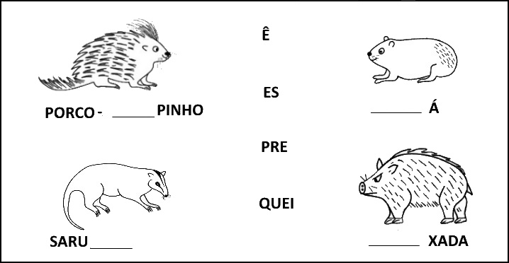Conte quantos são os filhotes de cada espécie e complete as afirmações abaixo.